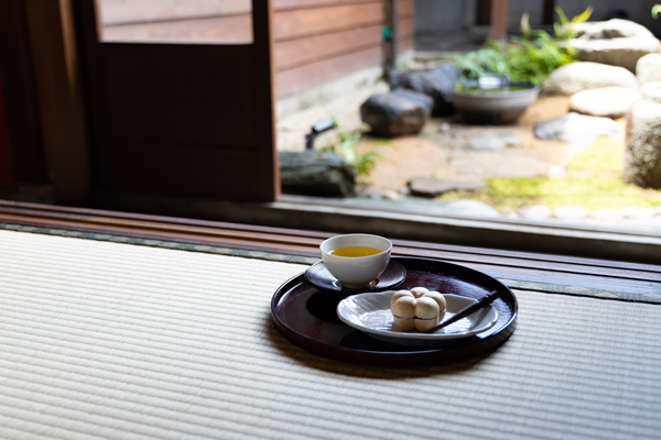 1階の庭の間は、朱色の壁と床の間の贅沢な和室です。 中庭を眺め、日常と異なるゆったりとした空間を感じながら時間を過ごすことができます。